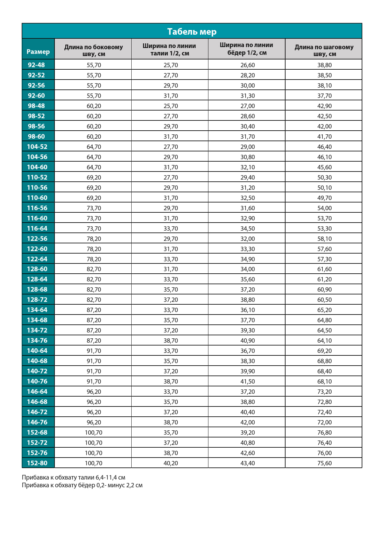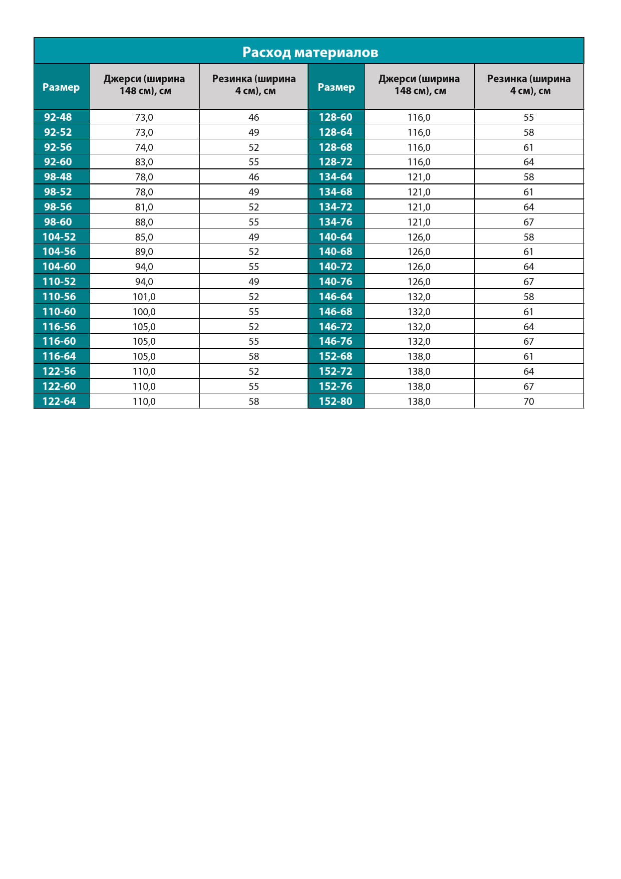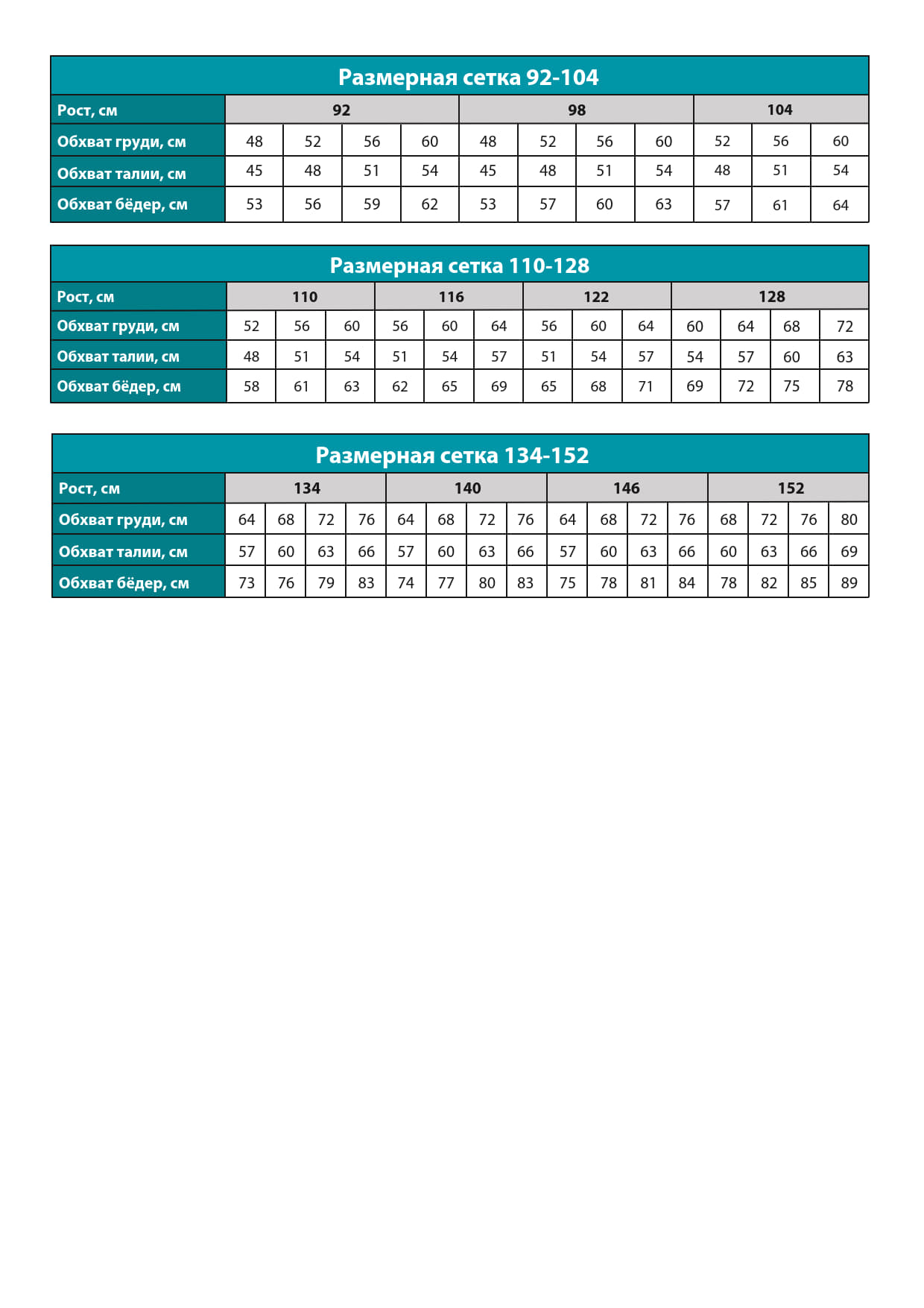 Размеры 92-152