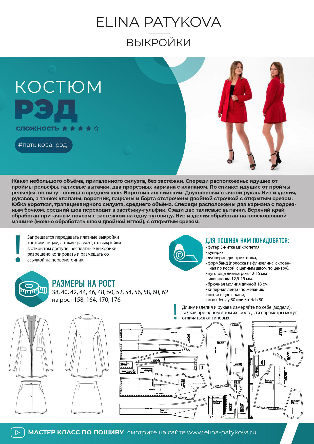 - Примечание. Если вы планируете шить костюм «Рэд», кроме МИКРОПЕТЛИ никакой другой трикотаж использовать нельзя! Можно было бы попробовать футер двухнитку, но велика вероятность, что жакет будет выглядеть «висячим», не выдержит форму.
