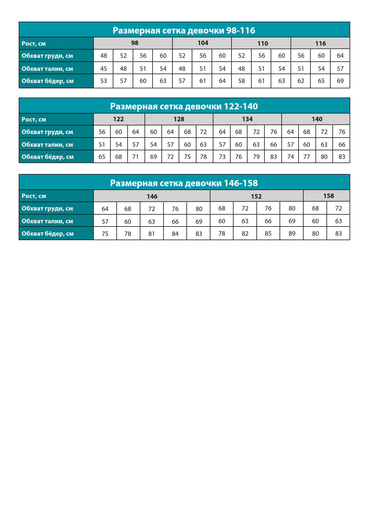 Размеры 98-158